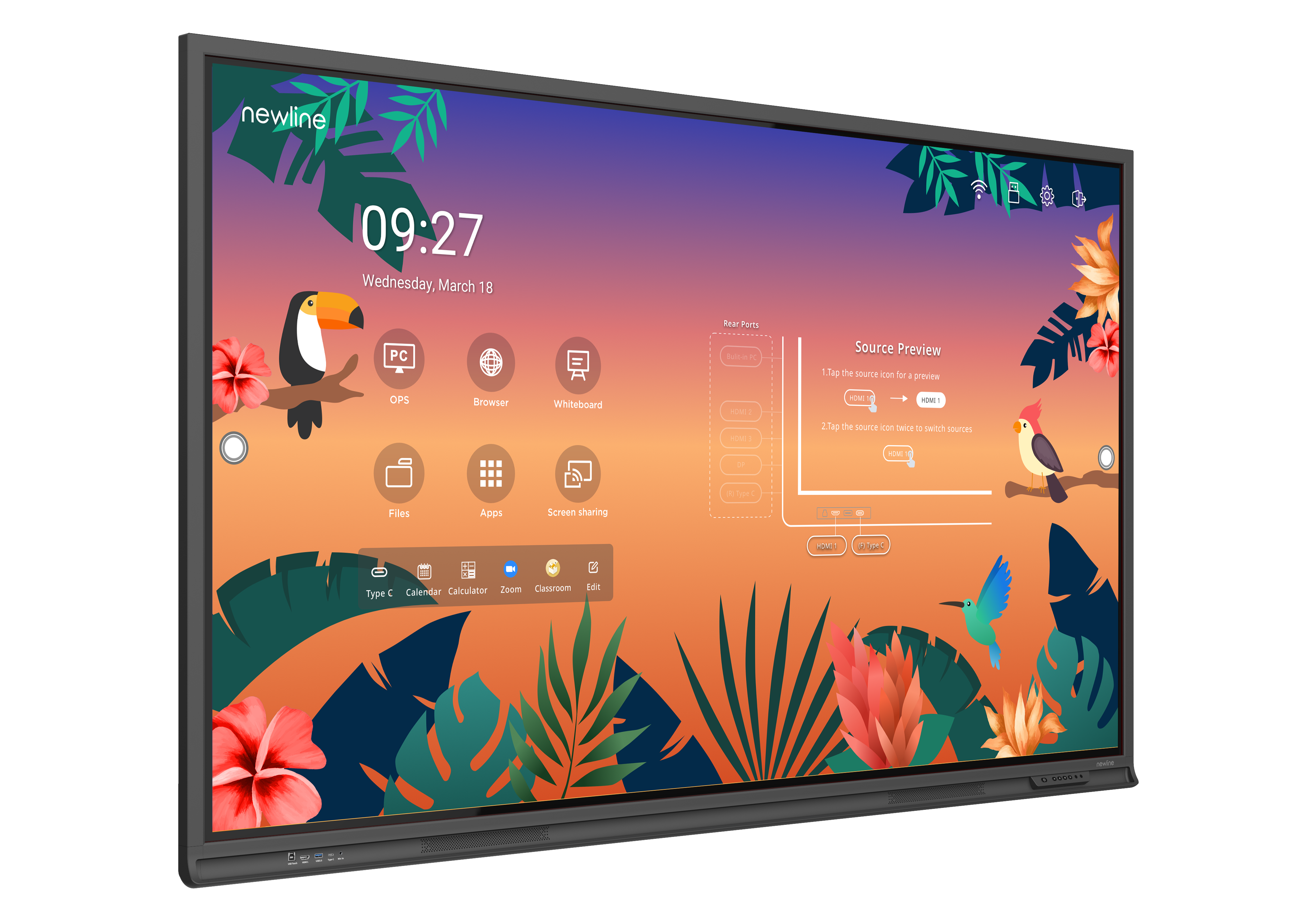 Панели Newline серии Q, имеют встроенную операционную систему Android 11 и очень мощную, самую современную «начинку». Благодаря этому, уже «из коробки» они являются вполне самодостаточными устройствами, с которыми можно работать, просто воткнув их в розетку и не подключая дополнительных источников сигнала. А встроенное программное обеспечение и возможность установки стороннего ПО из собственного магазина приложений, с флешки или удаленно через систему облачного управления, позволяет расширить их функционал практически до бесконечности.
