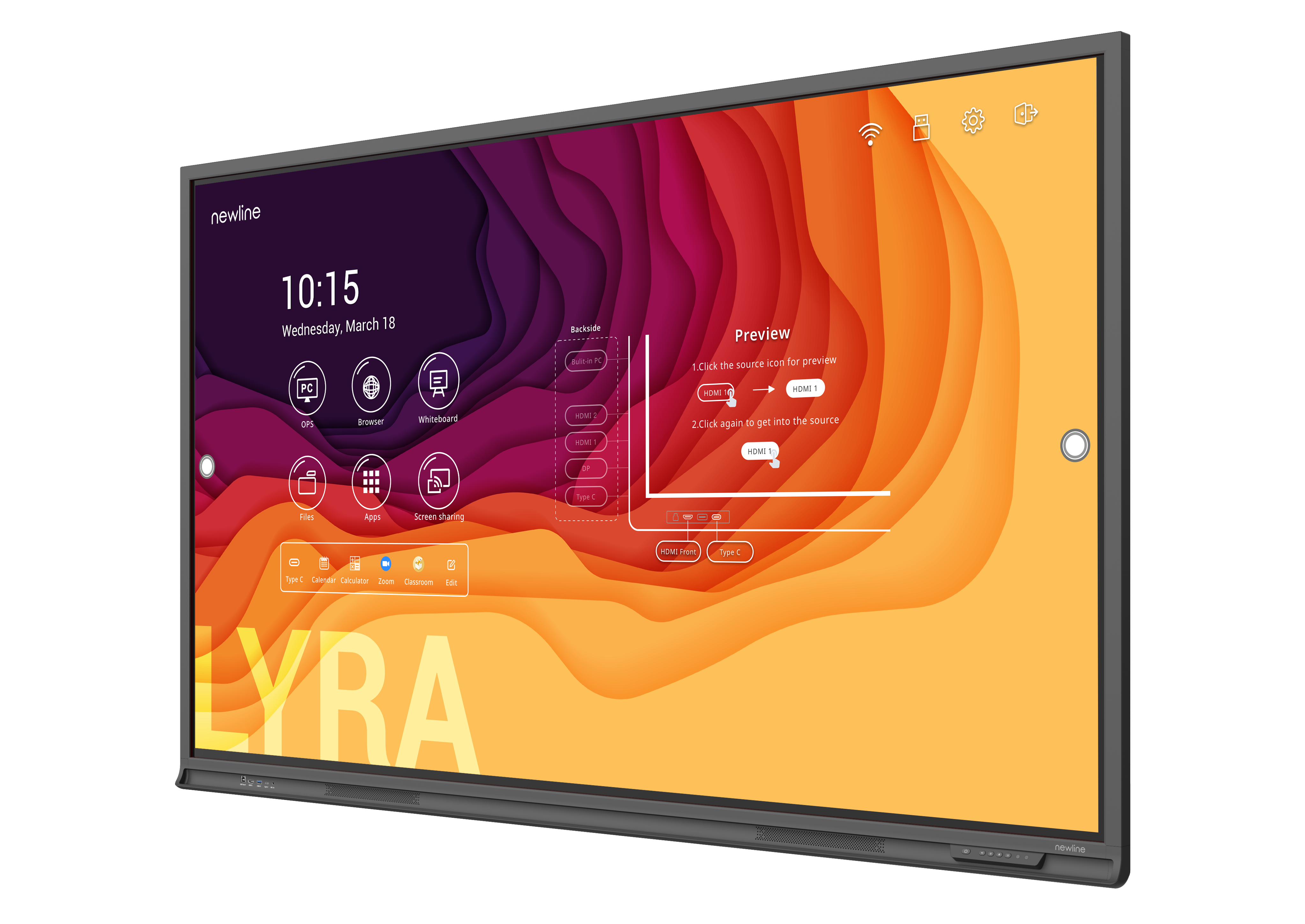 Считаете, что интерактивные панели массивны и несовременны? Только не Newline серии Q! Тонкий аккуратный корпус и узкие рамки делают Newline Q (Lyra) похожим на телевизор или обычный профессиональный дисплей. Только гораздо функциональнее.